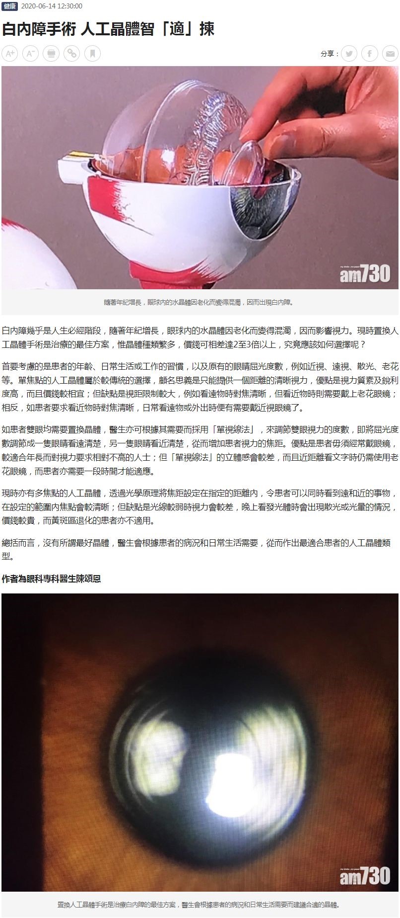 白內障手術 人工晶體智「適」揀
