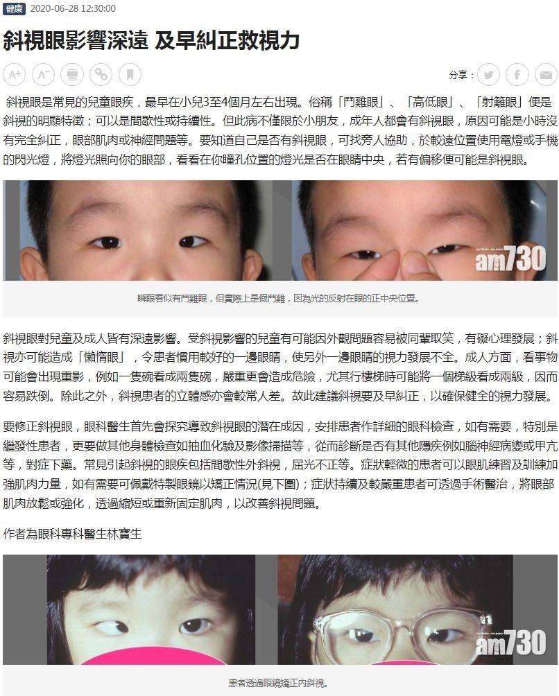 斜視眼影響深遠 及早糾正救視力