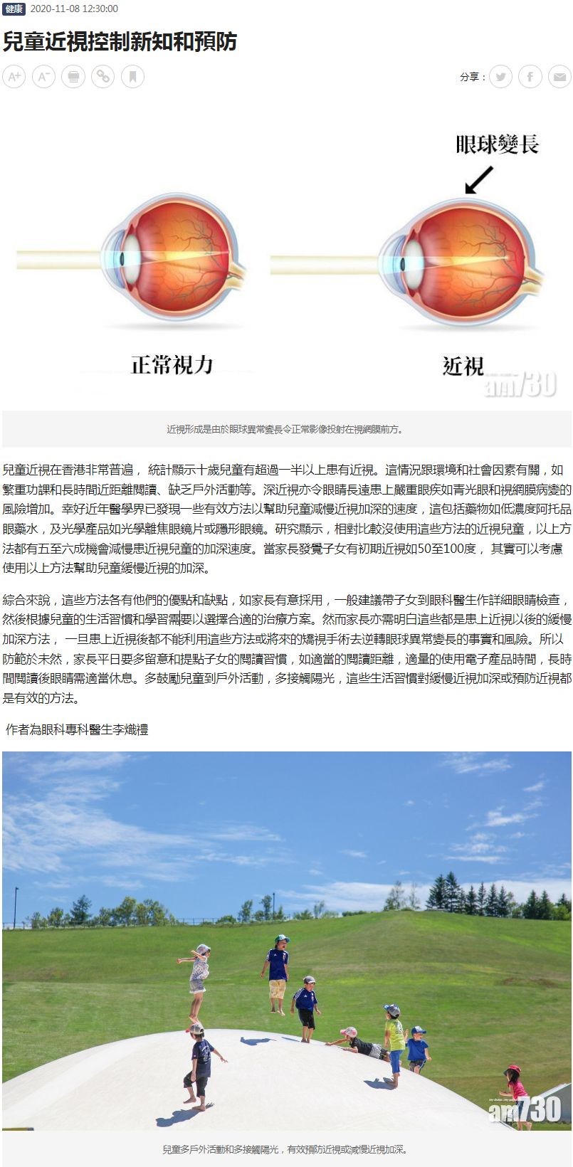 兒童近視控制新知和預防