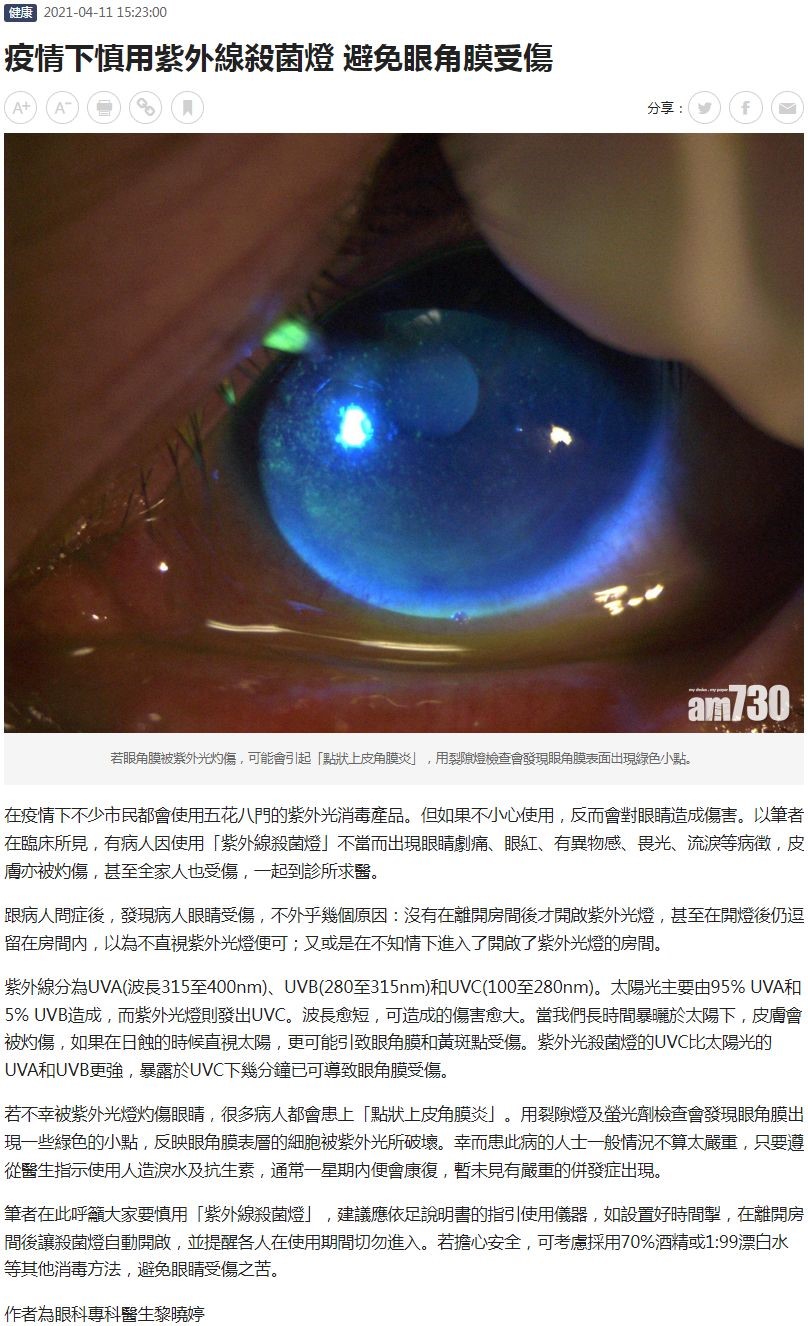 疫情下慎用紫外線殺菌燈 避免眼角膜受傷 黎曉婷 12.04.2021 AM730
