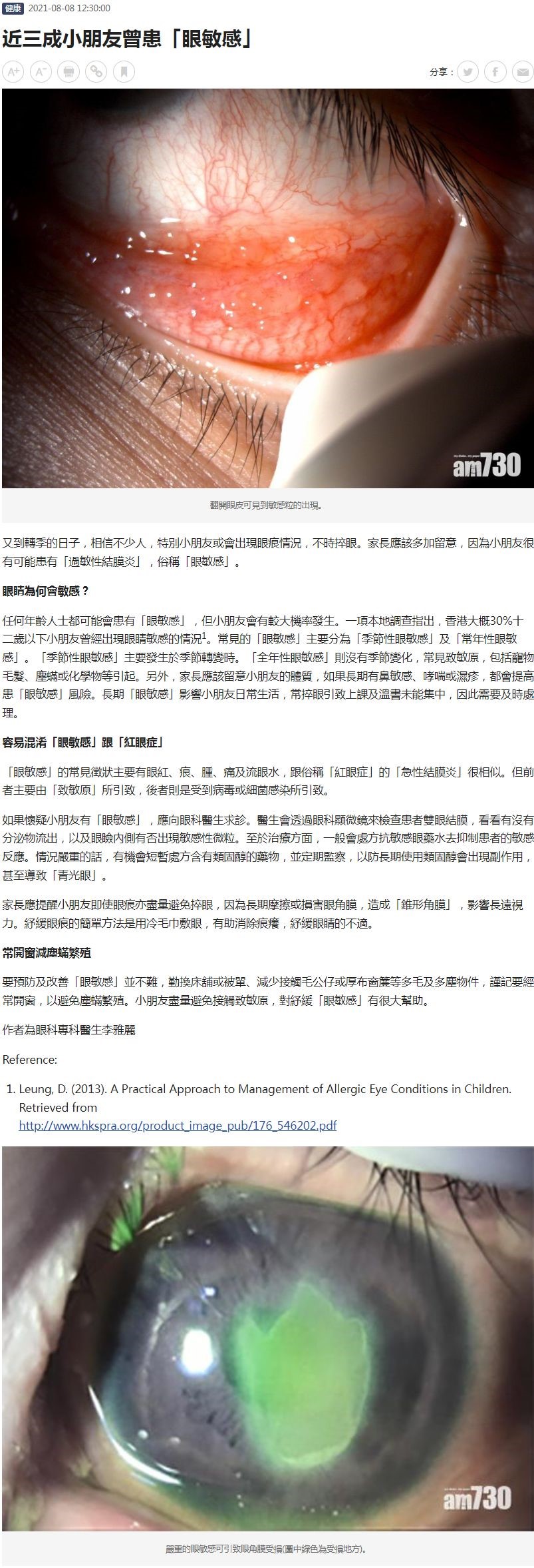 近三成小朋友曾患「眼敏感」 李雅麗 08.08.2021 AM730
