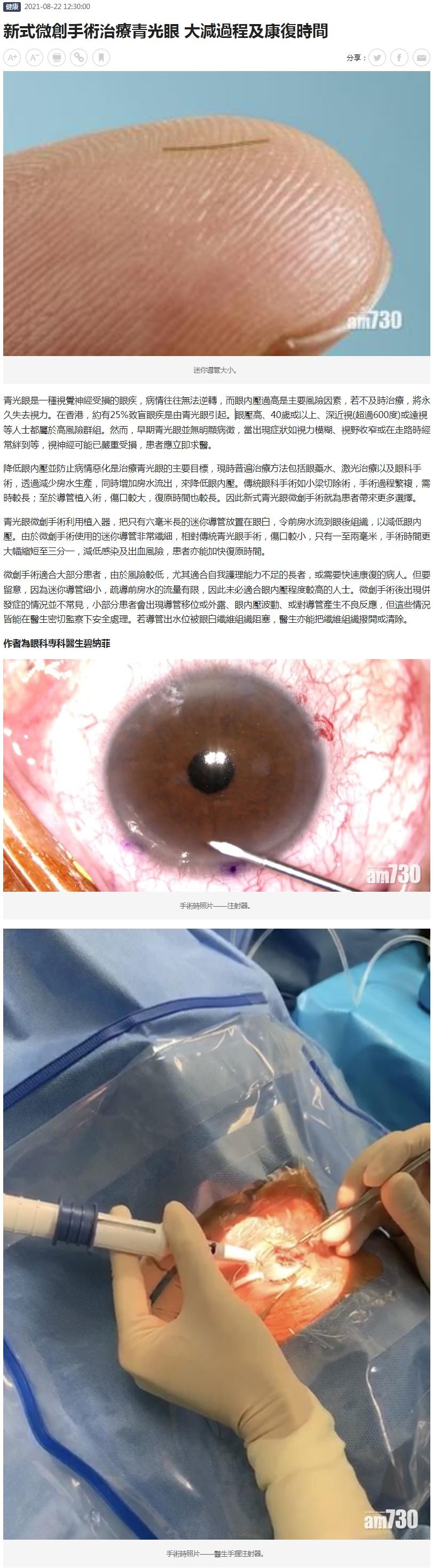 新式微創手術治療青光眼 大減過程及康復時間 碧納菲 22.08.2021 AM730