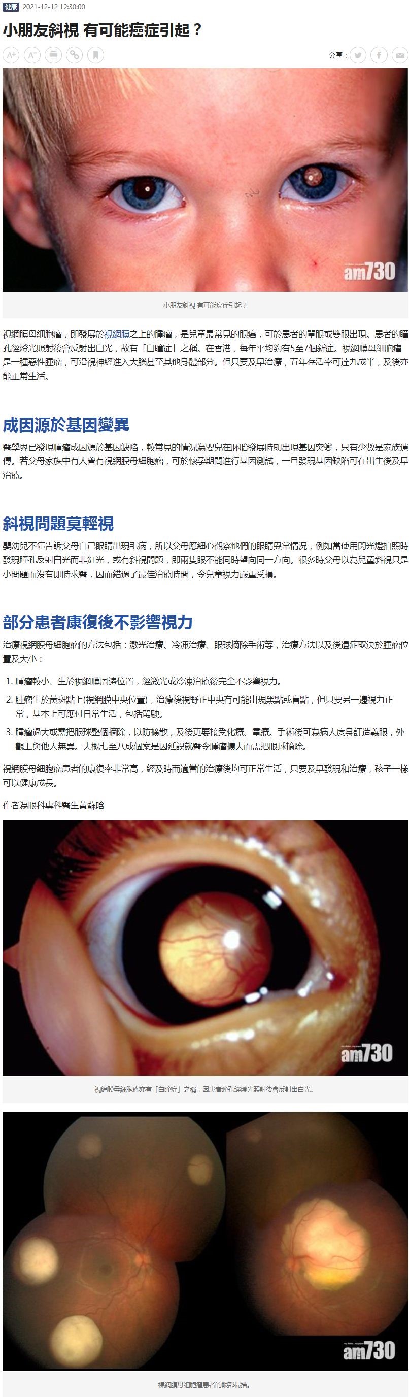 小朋友斜視 有可能癌症引起? 黃蘇晗 12.12.2021 AM730