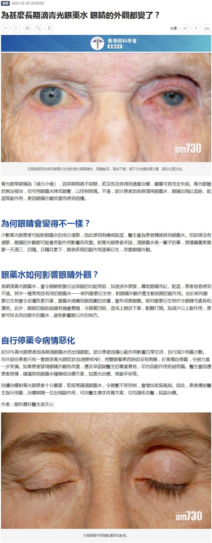 為甚麼長期滴青光眼藥水 眼睛的外觀都變了? 吳天心 09.01.2022 AM730