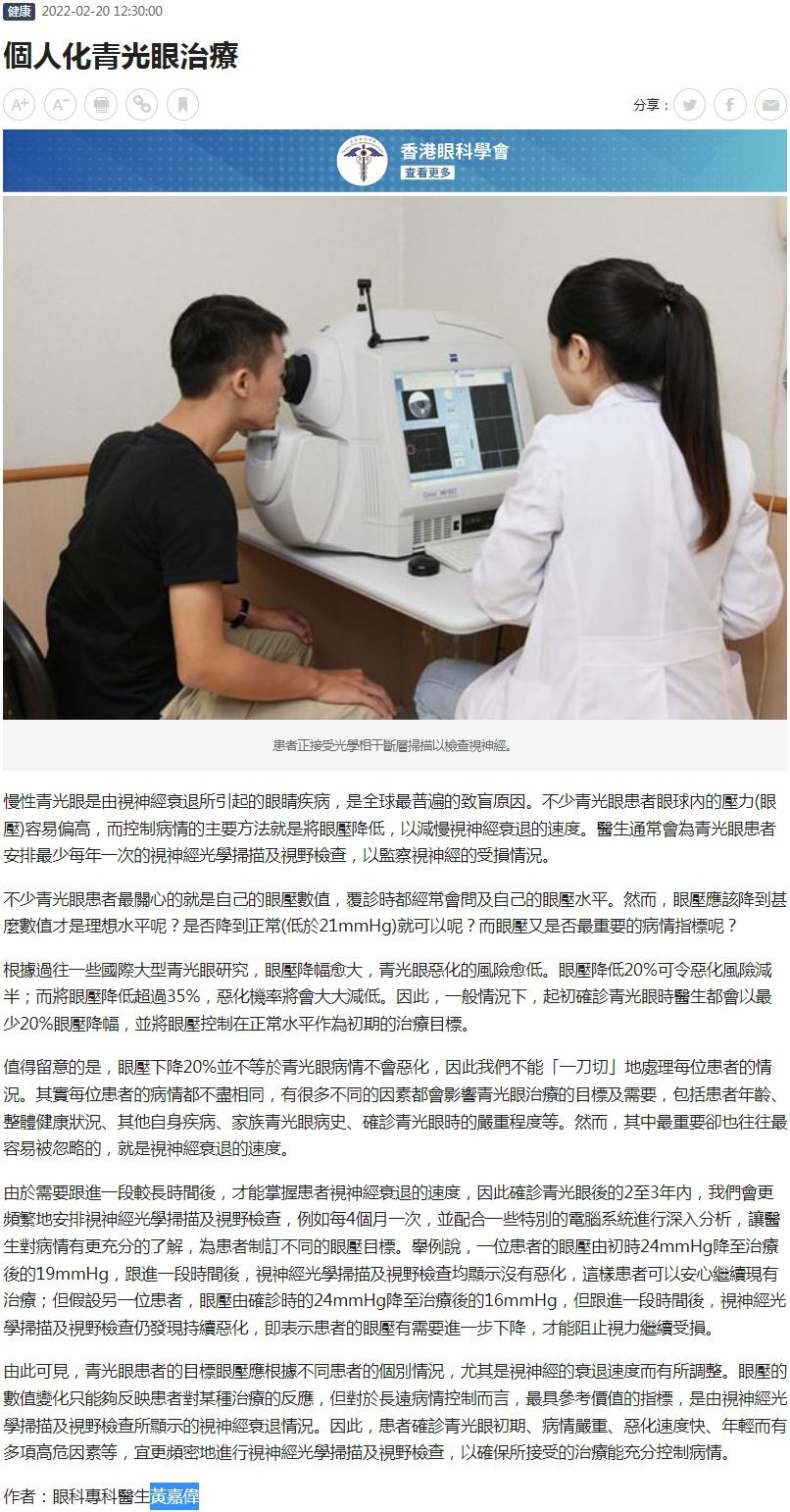 個人化青光眼治療 黃嘉偉 20.02.2022 AM730