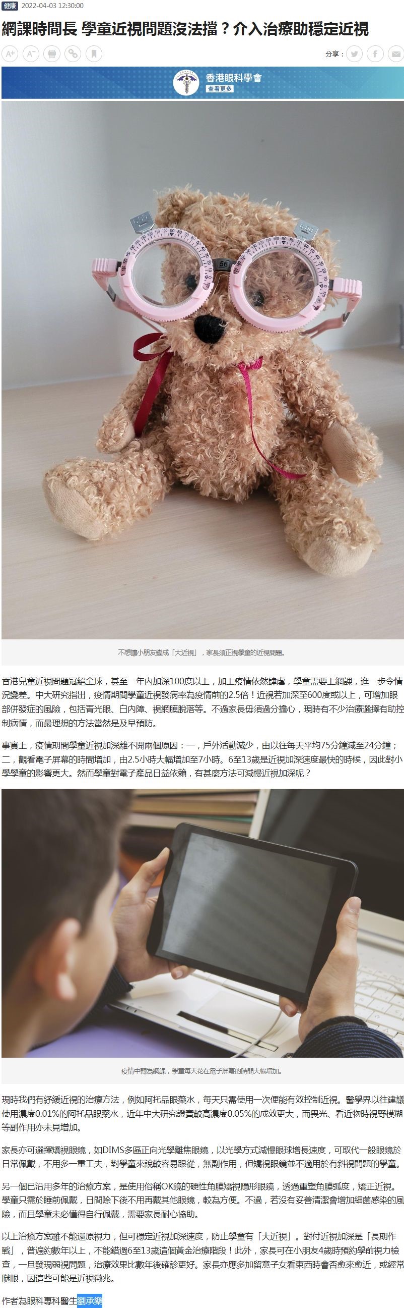 網課時間長 學童近視問題沒法擋?介入治療助穩定近視 劉承樂 03.04.2022 AM730