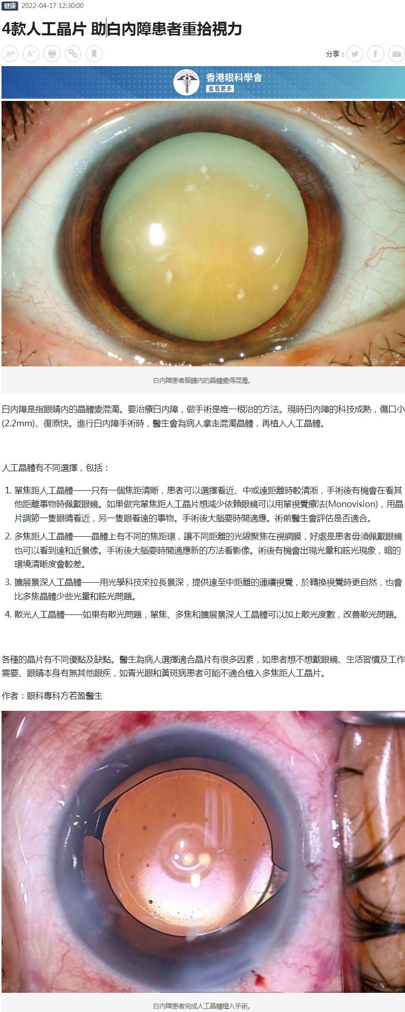 4款人工晶片 助白內障患者重拾視力 方若盈 17.04.2022 AM730
