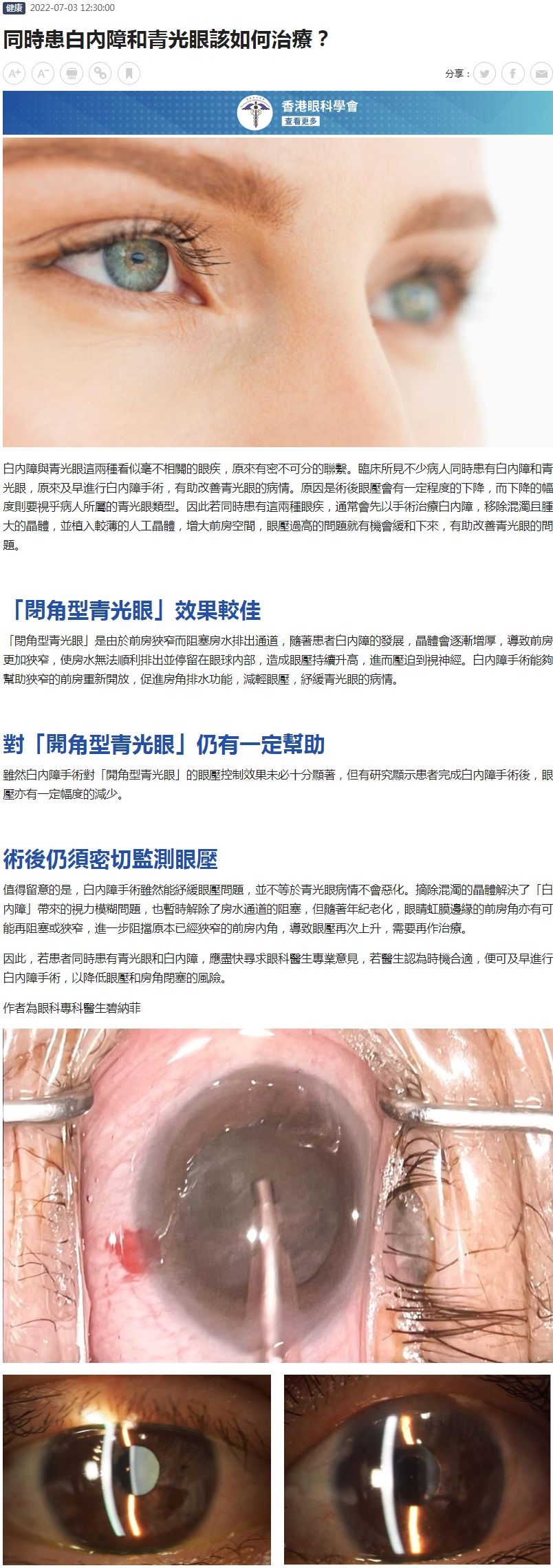 同時患白內障和青光眼該如何治療? 碧納菲 03.07.2022 AM730